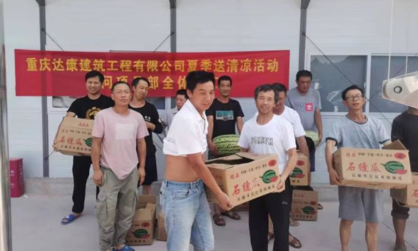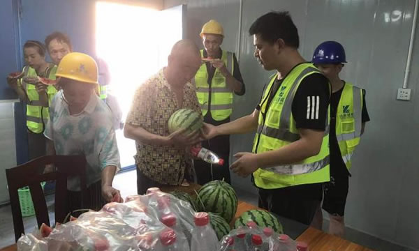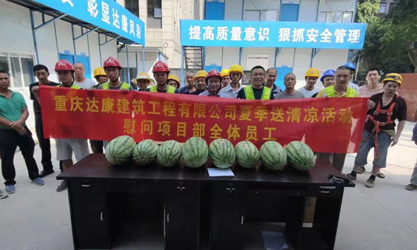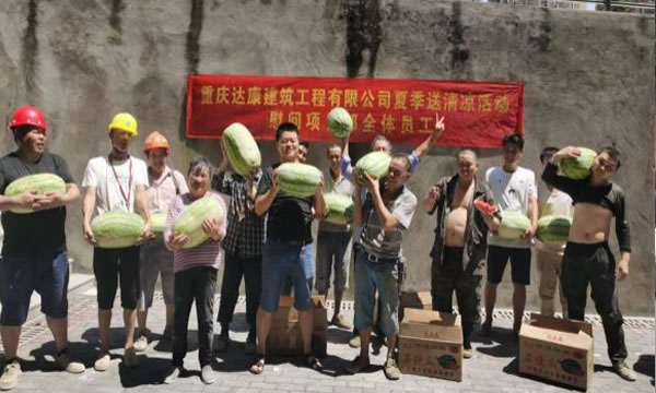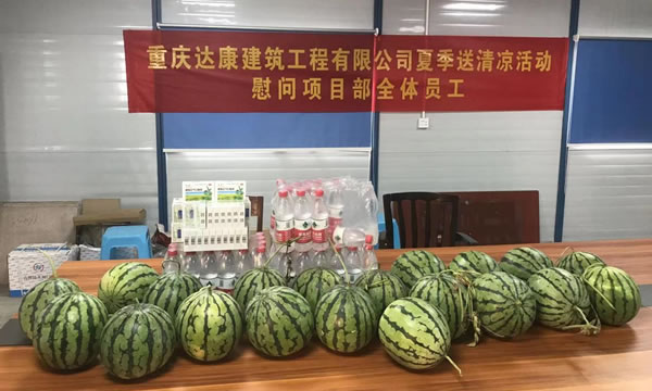 持续的高温天气给工地一线的施工人员带来严峻“烤”验。为切实做好工地高温施工安全工作,保障工地一线施工人员的身心健康,确保施工进度有序进行,7月14日,公司领导在项目负责人、相关工作人陪同下,深入龙力、戒毒所、江津德感、马鞍山等项目开展慰问,为高温天气下正在施工作业的工作人员送清凉。