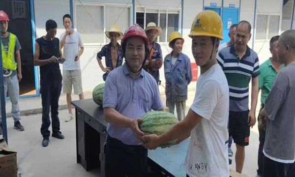 慰问过程中,公司领导了解了在建项目进程,询问了防暑降温措施开展情况和施工人员在高温天气下的工作生活状况,并代表公司对施工人员无惧“烤”验、坚守岗位的敬业精神表示衷心的感谢。他叮嘱施工单位在保证工程质量,强力推进工程进度的同时,一定要关心施工人员,合理安排好作息时间,保障施工安全,通过科学有效的措施抢抓工期。